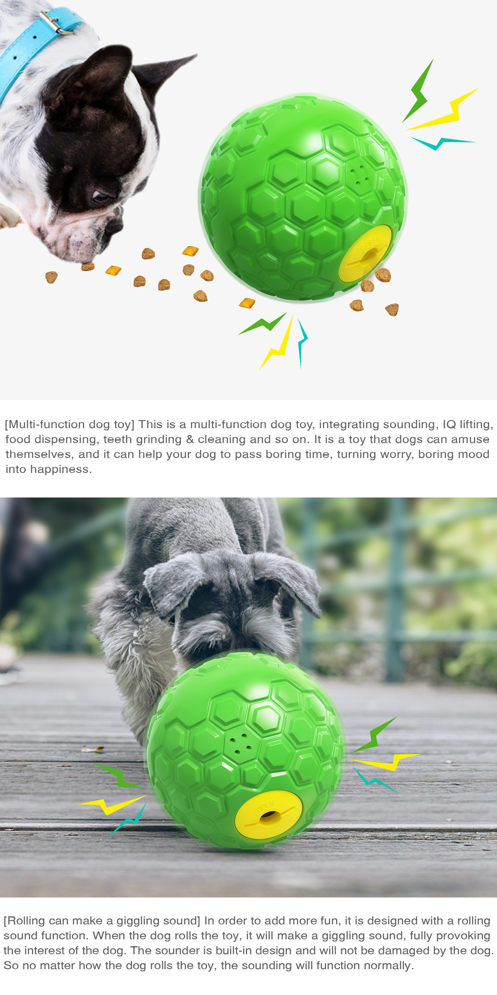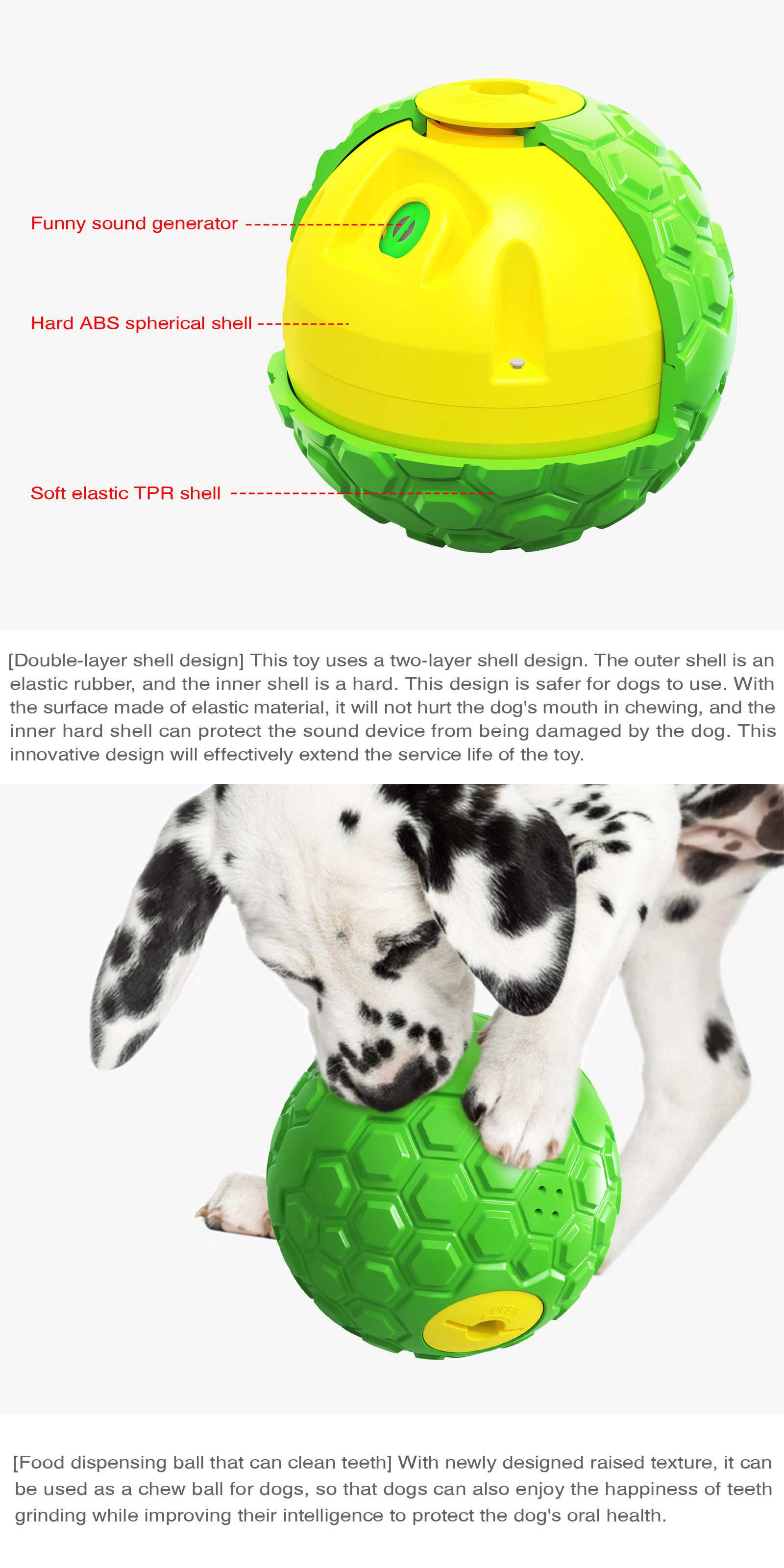 Chewing And Teeth Cleaning Squeaky Dog Puzzle Toy Pet Food Dispenser Ball