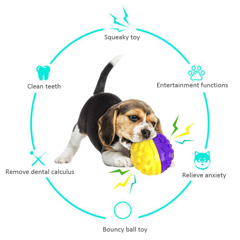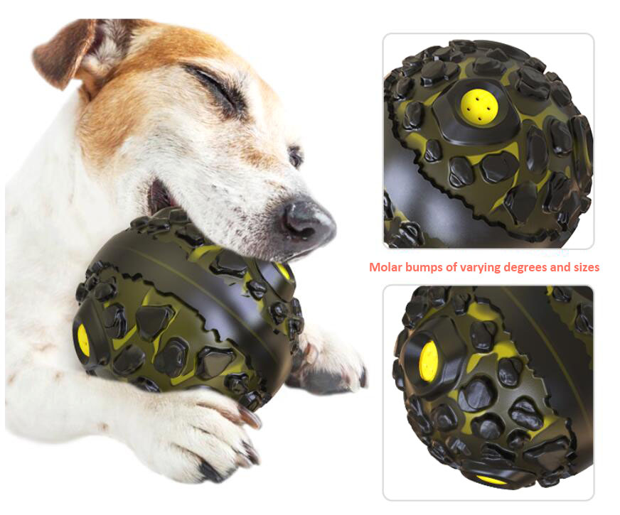 The new design of irregular meteorite shaped teeth grinding bumps can clean the incisors, cusps and molars while the dog is playing, effectively removing food debris, dirt and calculus, thus protecting the dog’s teeth and oral health.
